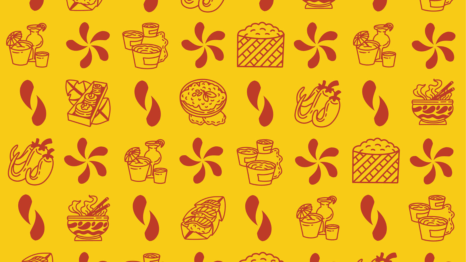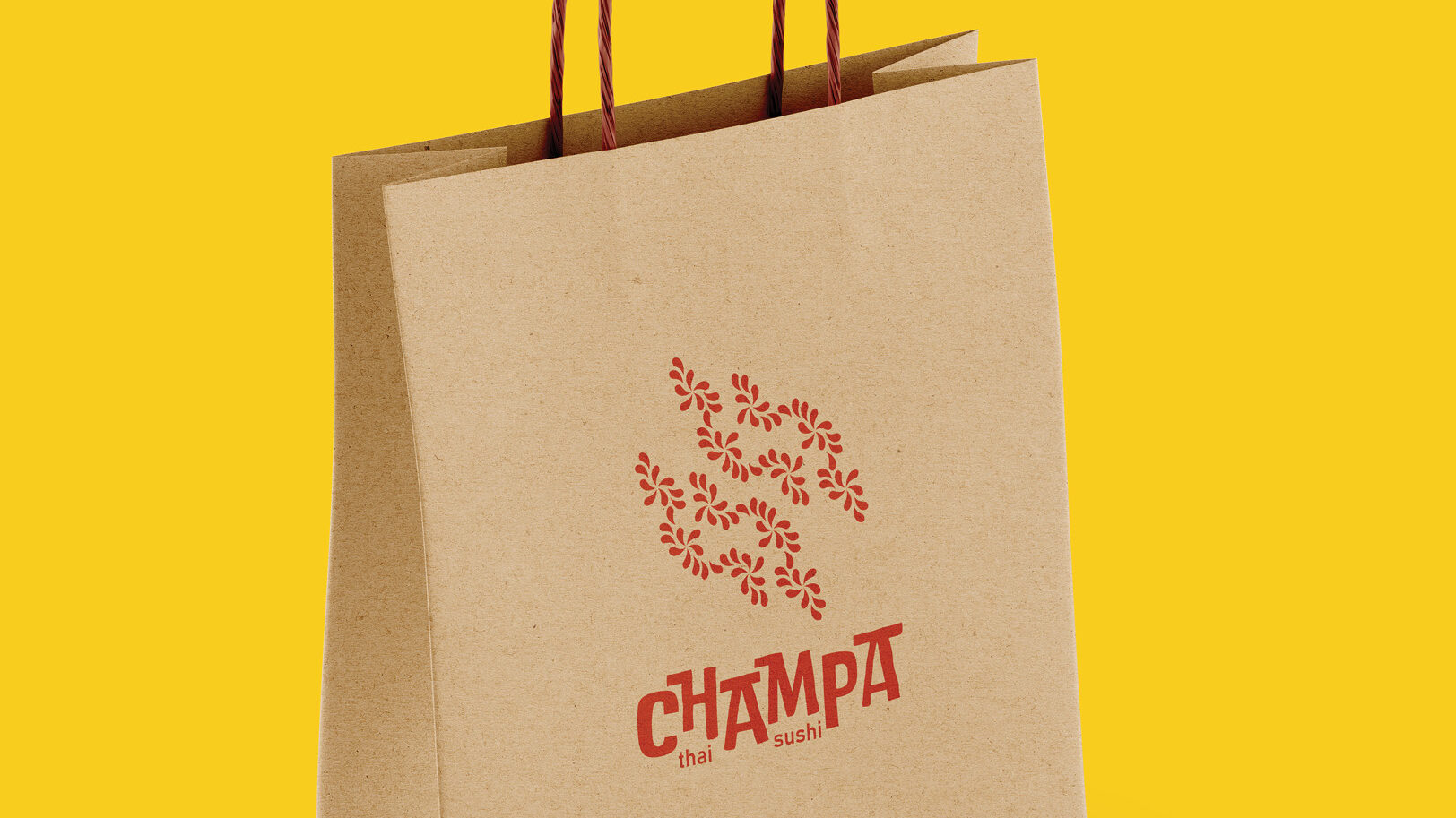 After feedback from my peers, I moved forward with the direction inspired by the beaches and markets of Thailand. Thus, Champa’s rebrand focused on bold typography and color to stand out against similar restaurants in the area. Additionally, a mixture of repeated and free-flowing patterns provided consistency with Champa’s location and take-away products which increases its memorability with their key customers.