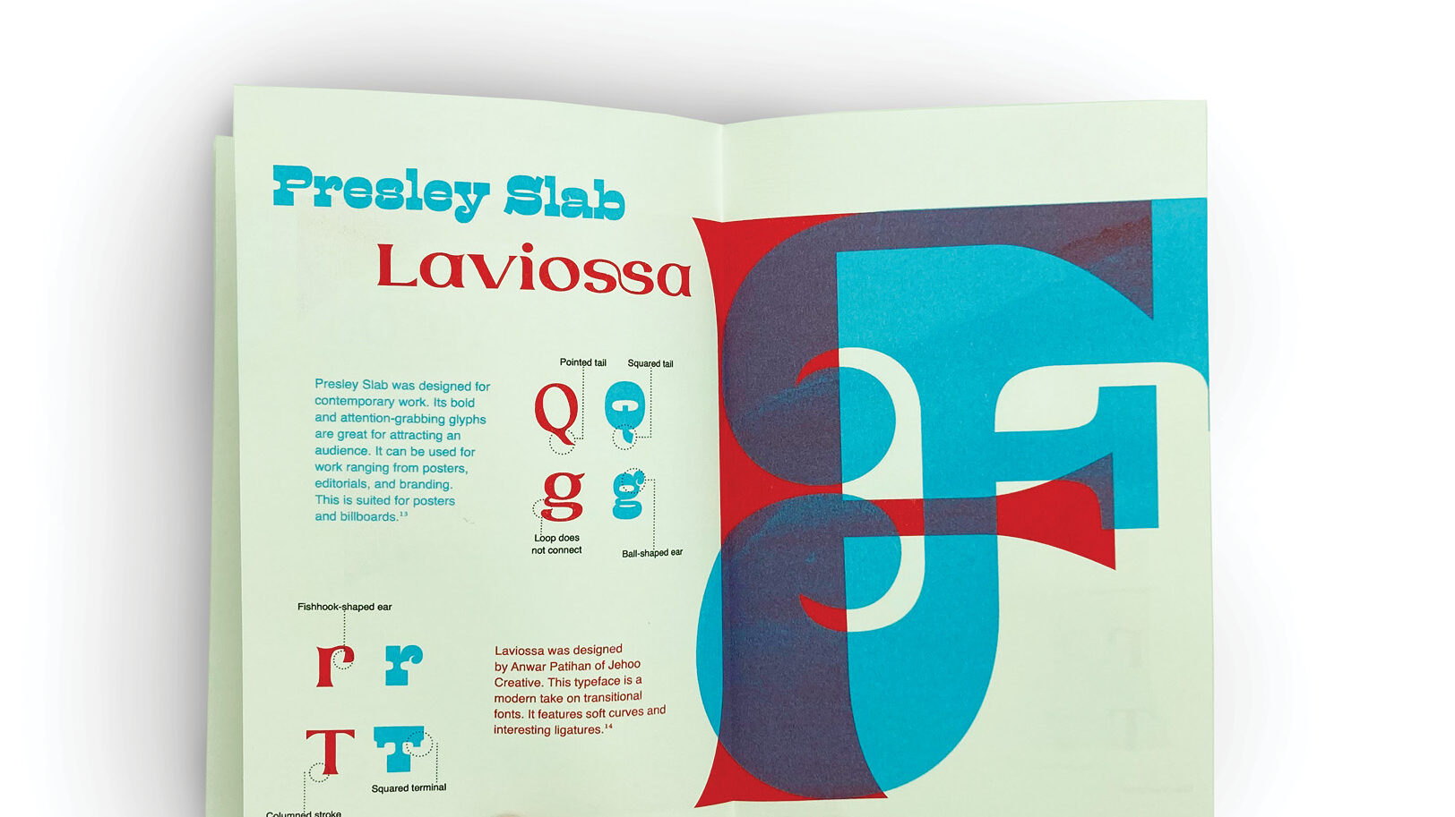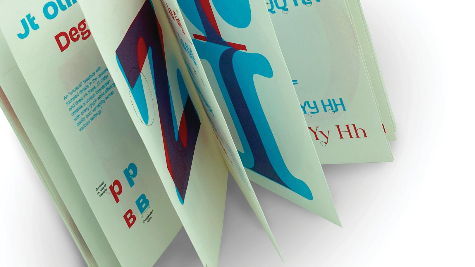 “panoranaglyph” utilizes the medium of anaglyphs to compare unique typefaces in a printed book format. A combination of RISO and traditional printing was used to create this publication.